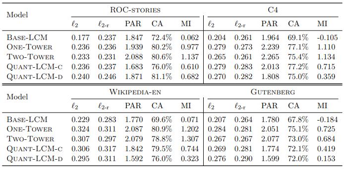 평가 데이터셋: C4, ROC-stories, Wikipedia-en, Gutenberg.