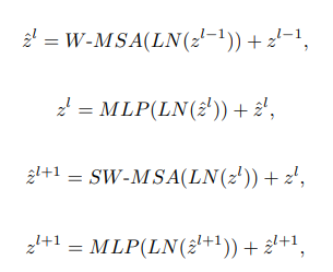 swin transformer block에서 input이 통과하면서 거치는 수식은 다음과 같다.