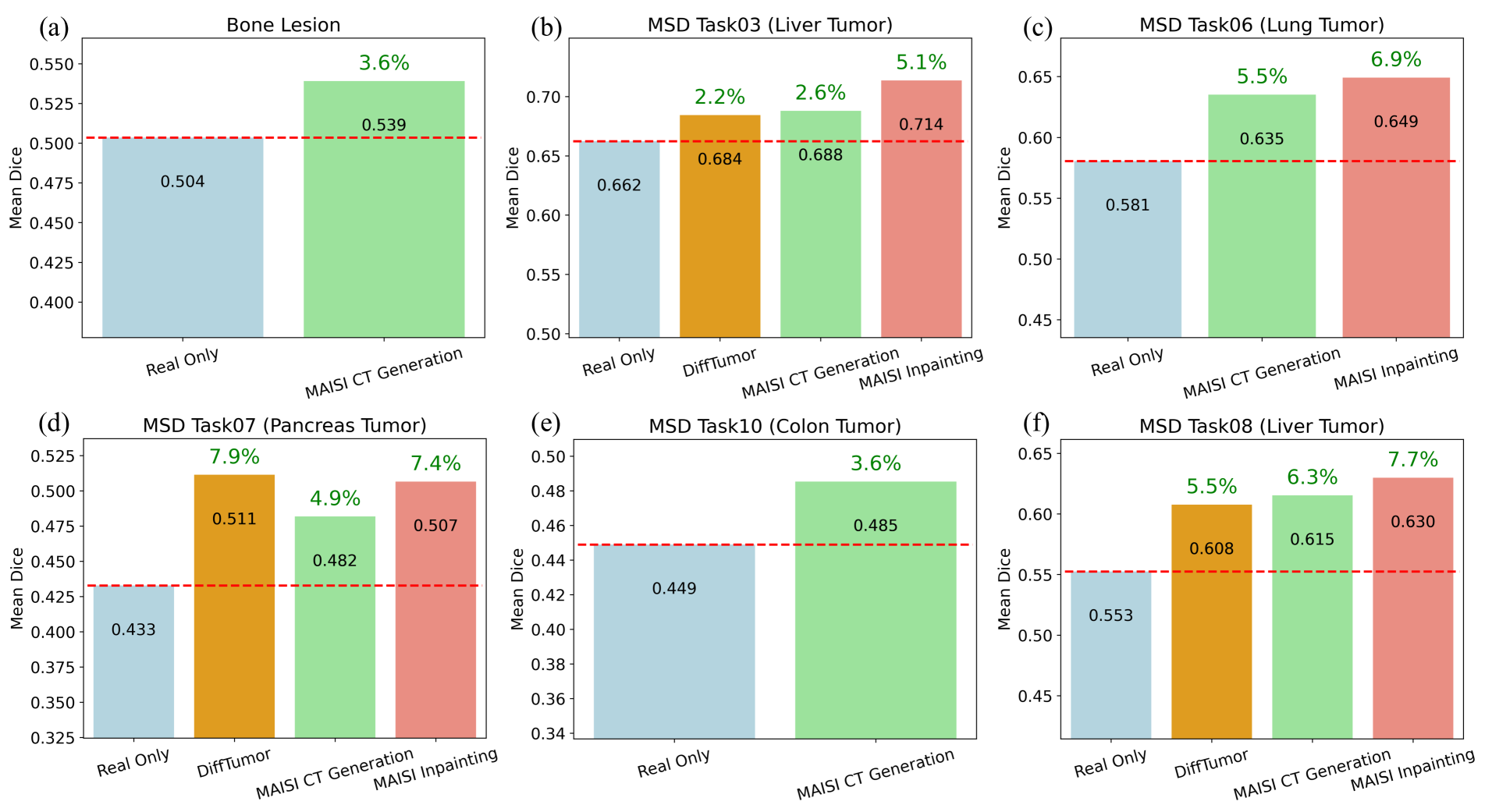 - MAISI CT Generation (단순 생성), MAISI Inpainting(건강한 환자의 real data에 tumor 합성)