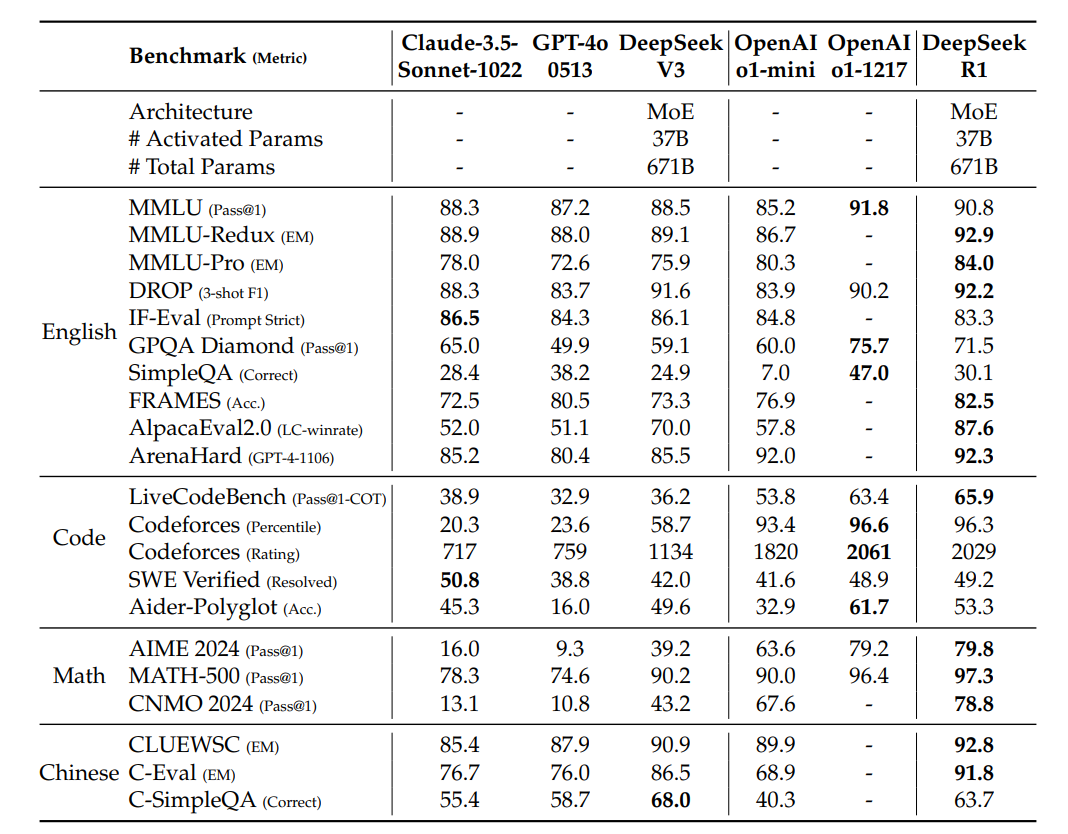 결론적으로 R1의 성능은 다음과 같이 나온다.