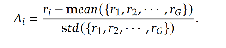 PPO를 적용할 경우에는 gpu cost가 많이 들기 때문에 group으로 묶어서 ppo를 적용 이를 식으로 나타내면 다음과 같다.