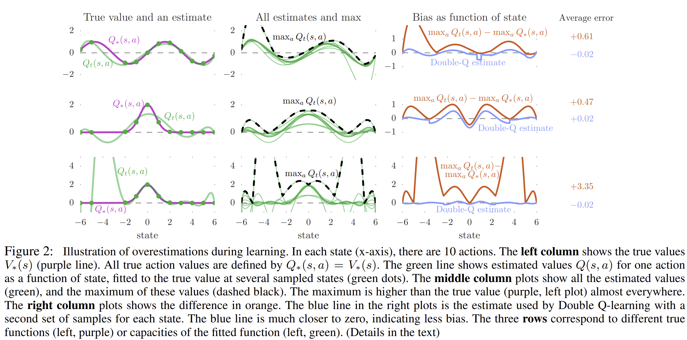 - Q-learning 알고리즘이 action value를 과대평가(overestimation) 하는 것은 이미 알려져 있었지만 이러한 과대평가가 얼마나 자주 일어나는지, 성능에 얼마나 영향을 미치는지, 예방될 수 있는지에 대한 답은 없었음.