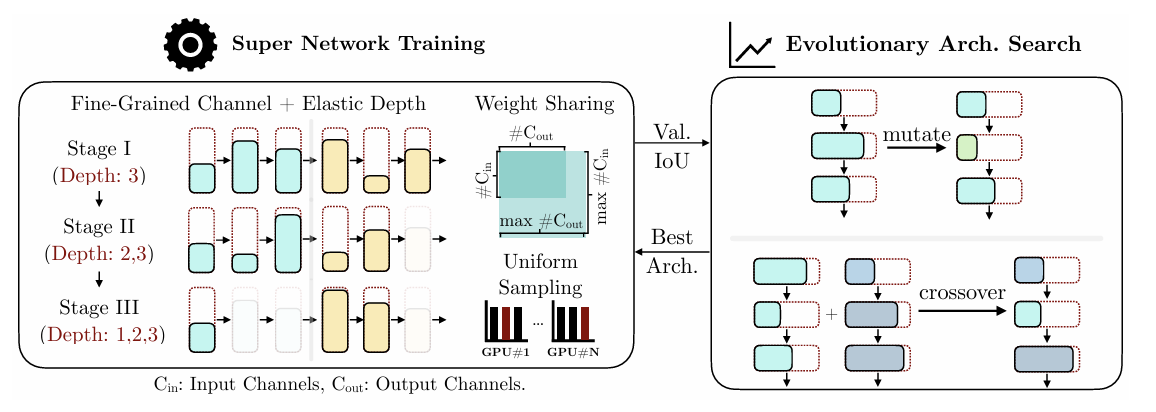 - 이 슈퍼 네트워크는 미세한 채널 수 조정(fine-grained channel numbers)과 네트워크 깊이 조절(elastic network depths) 을 지원한다.