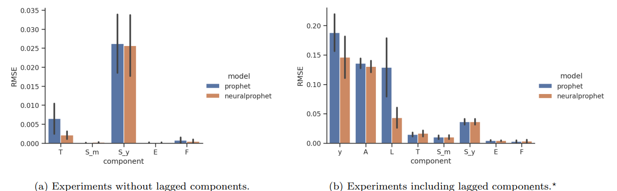 - 왼쪽은 lagged component를 포함하지 않은 경우의 성능차이 / 오른쪽은 포함하였을 때의 성능차이
