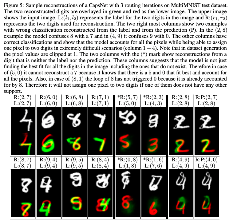 - MultiMNIST Dataset : 겹쳐진 object도 잘 구별 해낸다 MultiMNIST dataset은 연구진들이 직접 만든 데이터로 MNIST data의 서로다른 2개의 숫자를 최대 80%이상 겹쳐지도록 만든 데이터이다