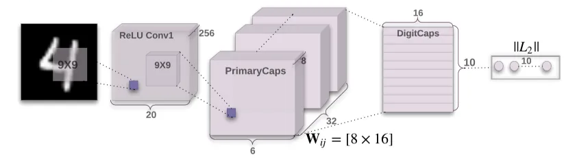 Capsule Network(CapsNet)는 일반적인 딥러닝 신경망처럼 여러 개의 층으로 구성되어 있지만, 기존 CNN과 다르게 Capsule(캡슐)이라는 개념을 사용하여 이미지의 특징을 더욱 정교하게 표현할 수 있다.