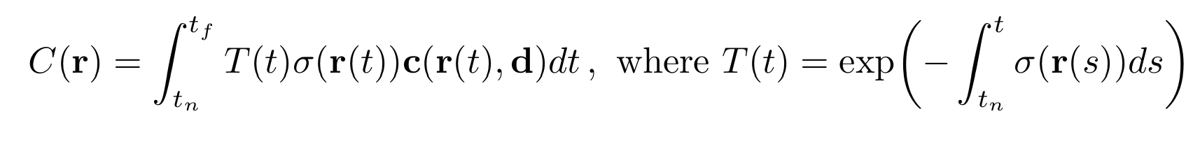 - r(t) = o + td : camera ray , C(r) : expected color of camera ray