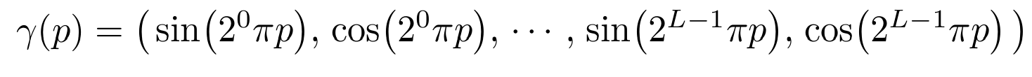 - 모델에 input으로 사용하는 3차원의 위치 정보 x와 2차원 방향 정보가 너무 저차원이라 positional encoding으로 고차원으로 임베딩 시켜줌
