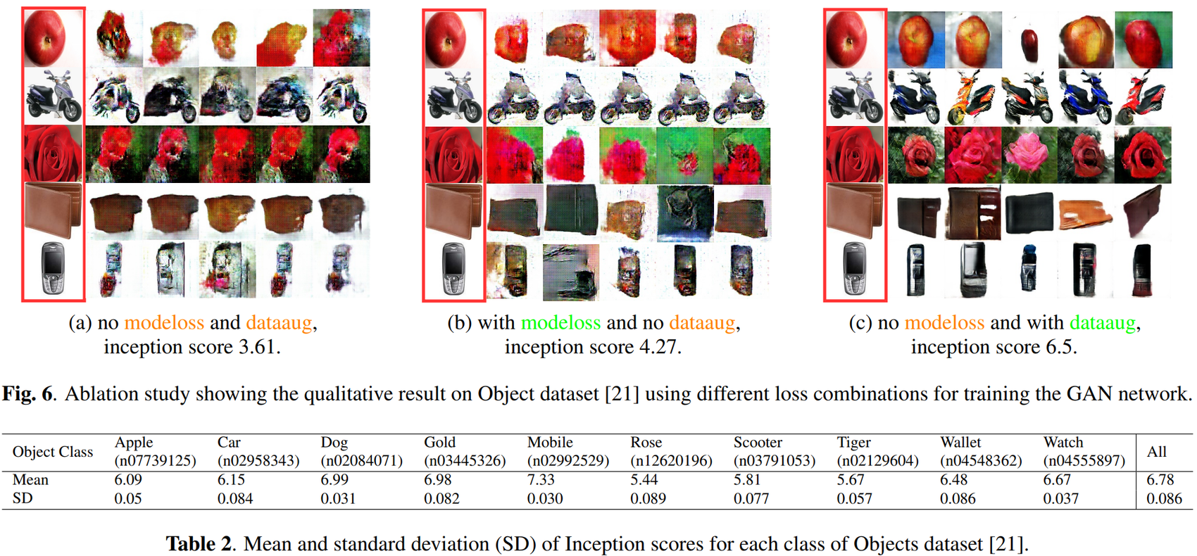 - GAN 네트워크를 training하는 데 각 loss의 중요성을 확인하기 위해 Object 데이터 세트에서는 세 가지 실험을 했다.