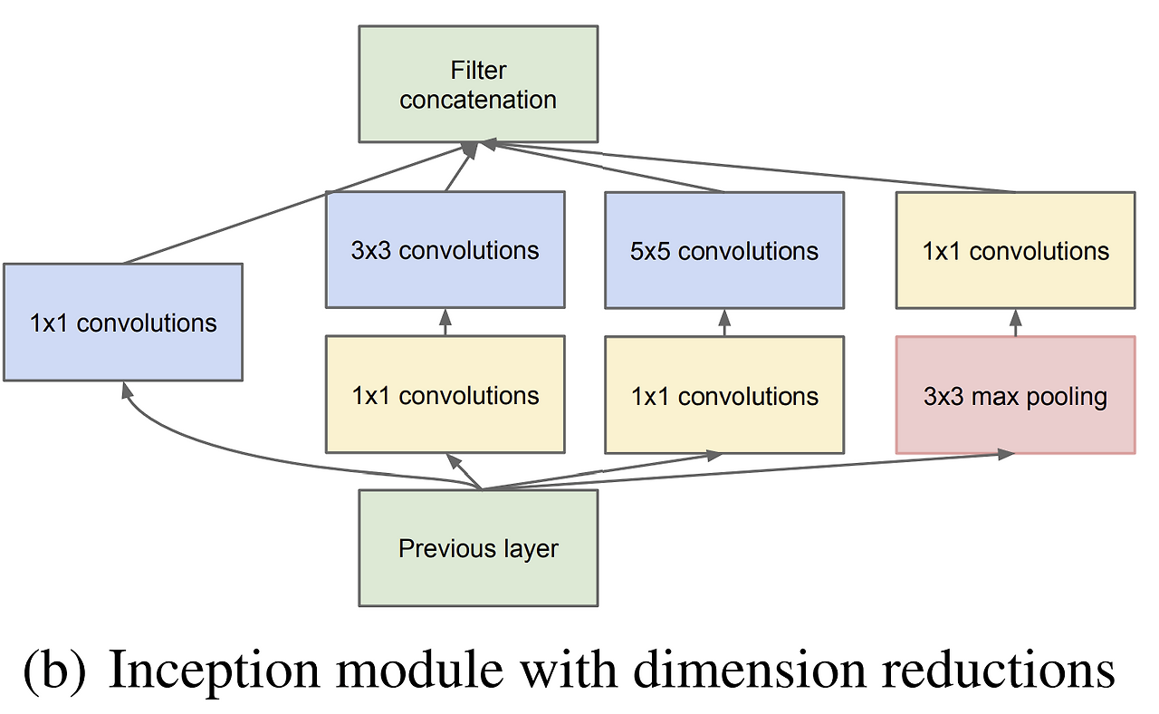 - 필터 사이즈는 뭐가 좋을지 알 수 없다 → 여러가지 사이즈를 가진 conv layer를 병렬로 통과시켜 보자