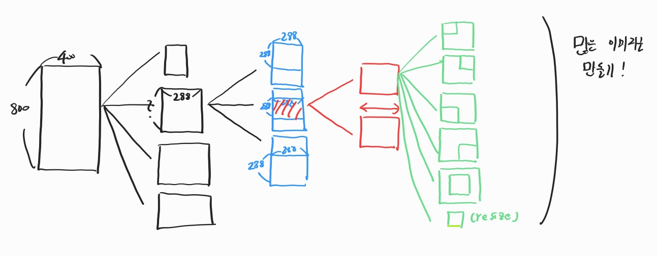 - 여러가지 resize, crop 방법으로 이미지 하나를 144개의 이미지로 변형을 거친 다음 통과시켜 총 144 * 7 = 1008 개의 출력을 평균 내서 최종 분류 수행 - 일종의 Test Time Augmentation