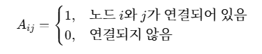 - 인접 행렬 (Adjacency Matrix), 노드 간 연결 관계를 나타냄.