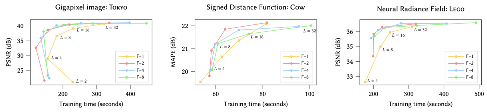 * 서로 다른 해상도의 레벨들이 서로 보완적인 강점 보유 → 해시 충돌에도 불구하고 장면 재구성 가능