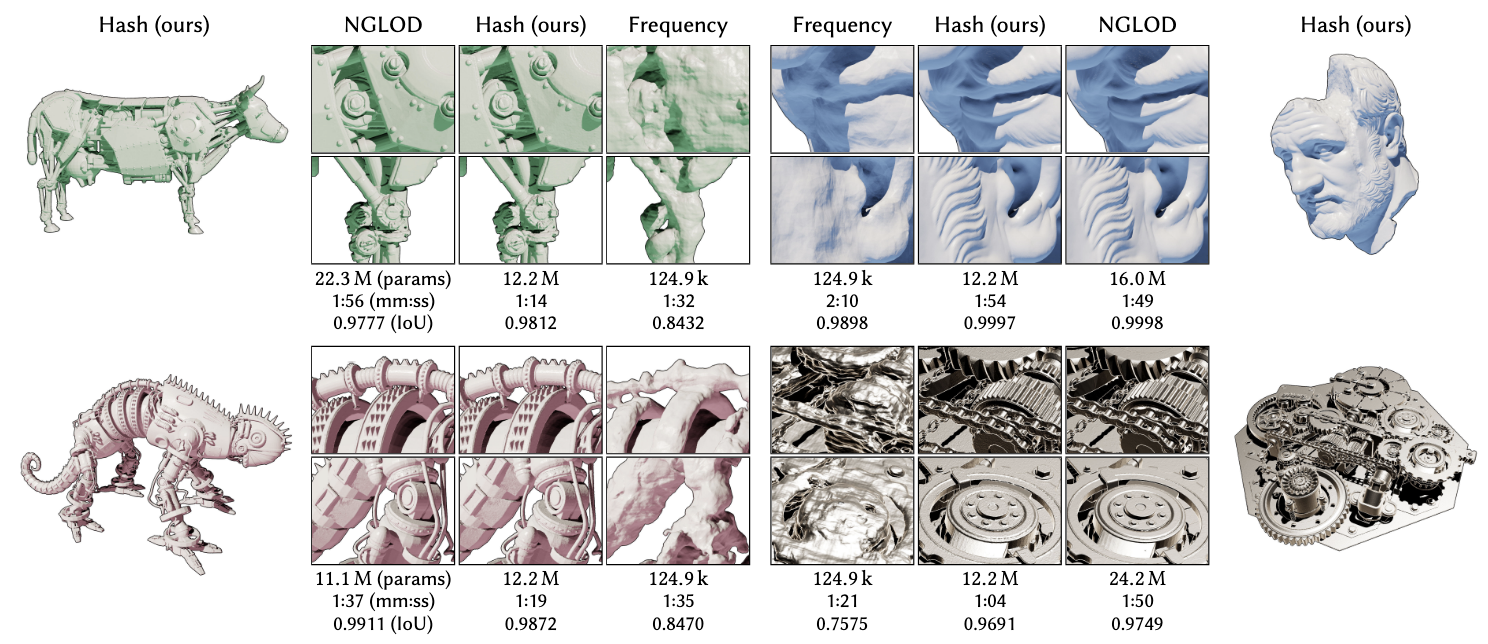* NGLOD: 형상에 최적화된 데이터 구조 활용 → 가시적 품질 측면에서는 가장 뛰어난 결과