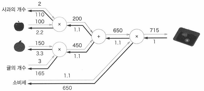 all_price = add_apple_orange_layer.forward(apple_price, orange_price) #(3)