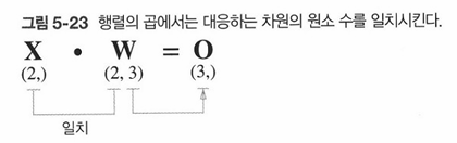 예를 들어 X와 W의 곱은 아래 그림처럼 대응하는 차원의 원소 수를 일치시켜야 한다.
