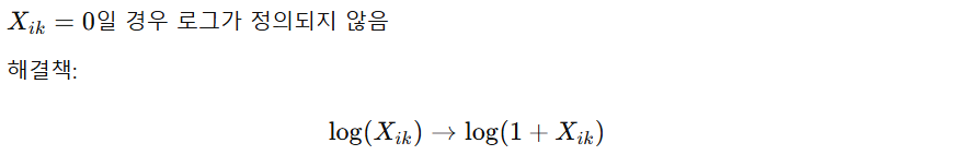 → 그러나 이 방식도 Xij의 값이 매우 클 수 있어 최적화가 어렵기 때문에 로그를 취한 값의 오차를 최소화하는 방식을 제안