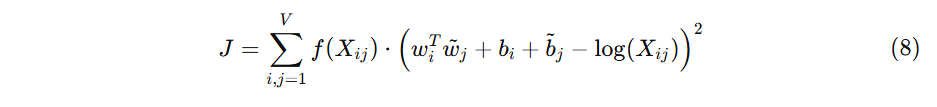 = 우리가 앞서 제시한 GloVe의 손실 함수(8)와 동일함