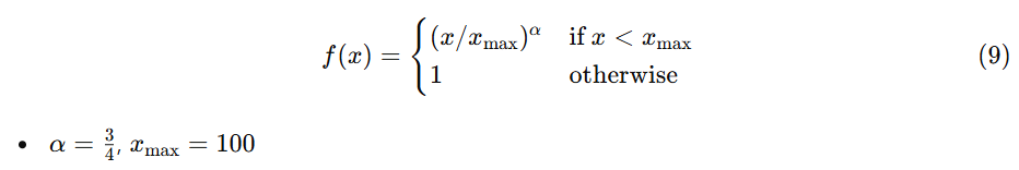 - f(x)는 단조 증가 → 희귀 공동 발생을 과도하게 강조하지 않도록