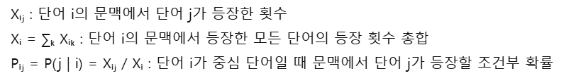 : 여기서 X는 의 문맥에서 가 등장한 횟수=공동 발생 행렬의 항목