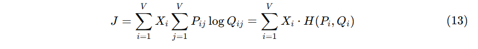 : 여기서 H(P,Q는 확률 분포 Pi와 Qi 간의 크로스 엔트로피(cross entropy)이며, (8)의 가중 최소제곱 손실 함수와 유사한 형식을 가지고 있음