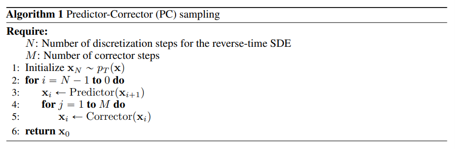 본 논문에서는 샘플링 과정에서 Predictor-Corrector(PC) 방식을 사용한다. 각 이산적인 스텝에서 Predictor가 다음 스텝의 이미지를 예측하고 Corrector가 예측의 오차값을 보정해준다.