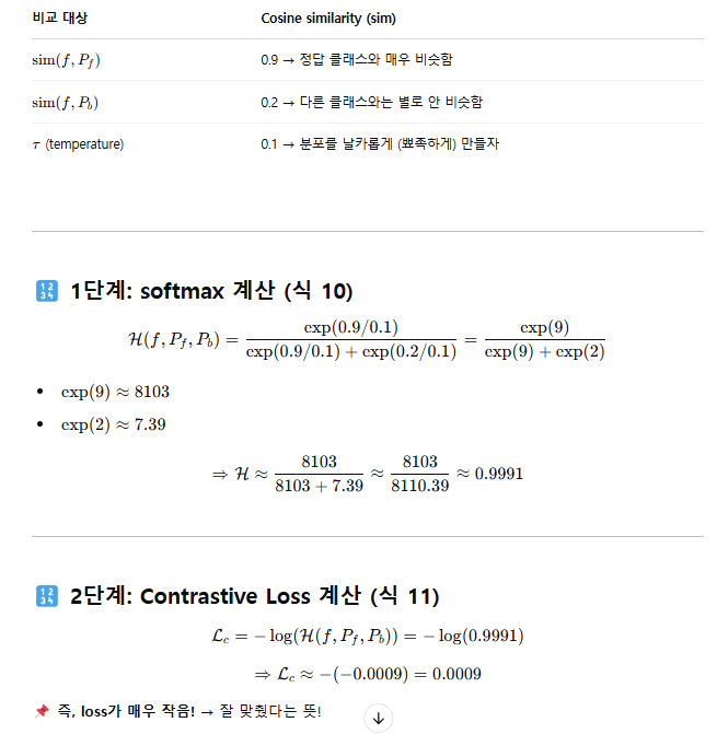 - $\tau$: temperature (보통 0.9) -> sharpness