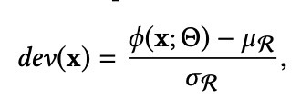 지속적으로 언급하는 본 모델의 장점인 feature representation 없이 이상 점수를 계산할 수 있는 함수 ϕ는 가우시안 사전 확률과 Z-scores로 구성된다.