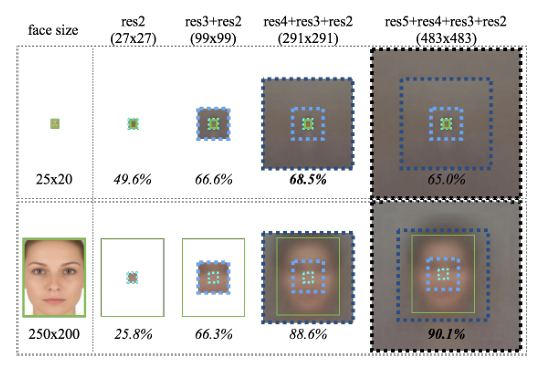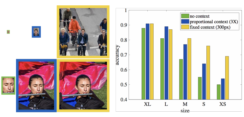 - 큰 얼굴은 context 없이도 인식이 가능하지만,