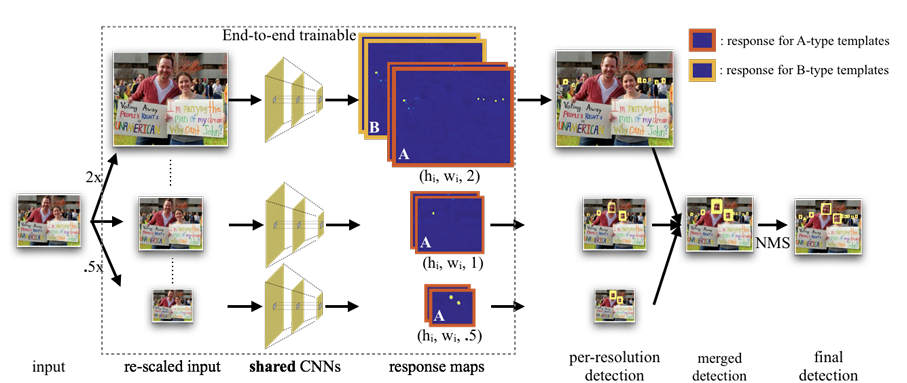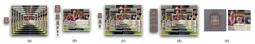 기존 연구들은 일반적으로 고정된 크기의 canonical template으로 region을 resize하여, scale-normalized classifier를 학습하는 방식을 채택해 왔다. 하지만 하나의 template 크기로 모든 객체 scale을 다룰 수는 없다. 작은 template은 작은 얼굴을 잘 잡지만, 큰 template은 세밀한 facial feature를 더 잘 포착할 수 있기 때문이다.