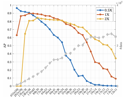 - Resolution: pre-trained 모델의 성능은 특정 scale 범위(40~140px)에 최적화되어 있으며, 이를 벗어나는 객체는 입력 해상도 조절을 통해 해당 범위로 맞춰야 성능이 극대화된다.