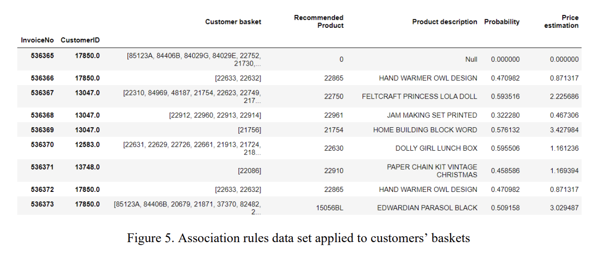 - 연관 규칙을 도출하기 위해 해당 연구에서는 FP-Growth 모델 사용 → 거래 이력을 바탕으로 데이터셋 내에서 가장 자주 발생하는 연관 규칙 집합을 도출할 수 있음
