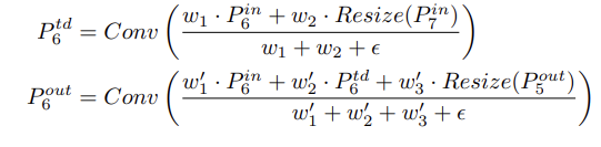 - 가중치 양방향 특징 피라미드 네트워크(Weighted BiFPN) 제안