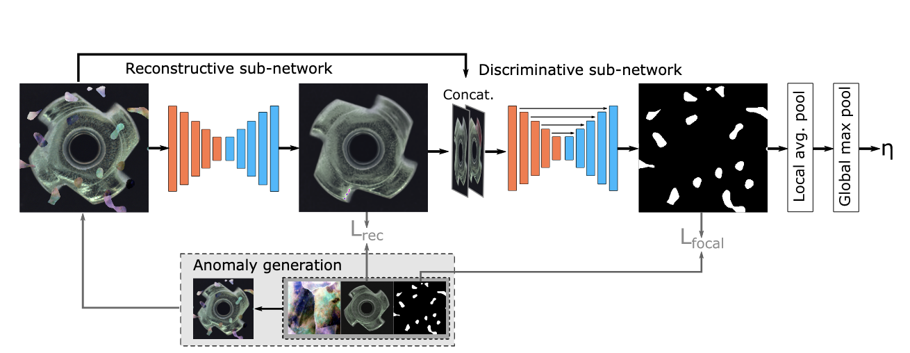 - 표면 이상 탐지를 discriminative task로 접근 → DRÆM (Discriminatively trained Reconstruction Anomaly Embedding Model) 제안
