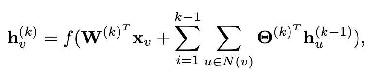 : 노드 v의 k번째 layer에서의 표현