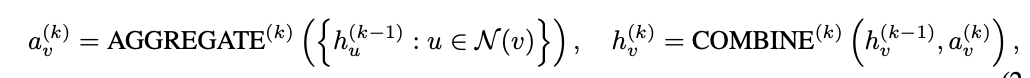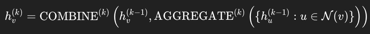 - COMBINE (혹은 UPDATE): 자기 자신과 집계값을 합치는 함수 (예: MLP)