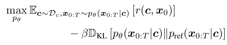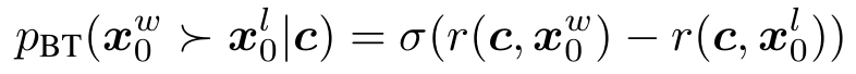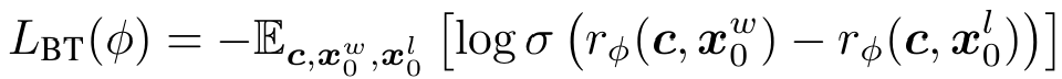 - Bradley-Terry 모델 사용, reward model $r_\phi(c,x_0)$ 사용