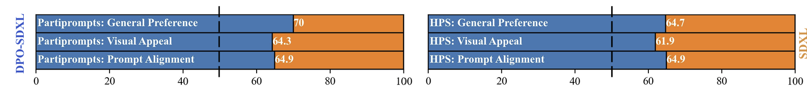 - SDXL-DPO vs SDXL-base: 70%