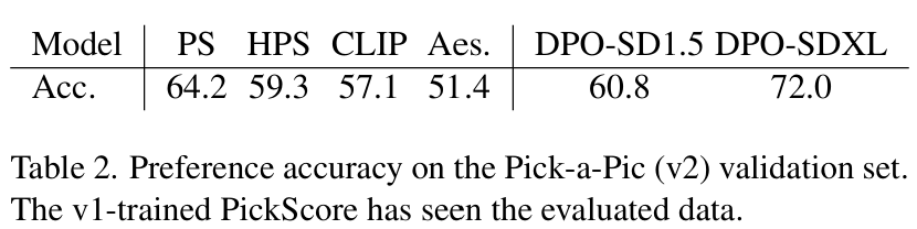 특히 DPO-SDXL은 기존 모든 recognition 모델보다 높은 성능을 기록.