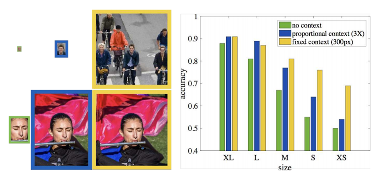 아래 오른쪽 그림은 얼굴 사이즈가 다를 때의 결과인데, context를 반영한 것이 결과가 더 좋다는 것을 반영하고 있는 그림이다. 이 성능의 차이가 사이즈가 작아질수록 fixed-size가 훨씬 좋음을 알 수 있다.