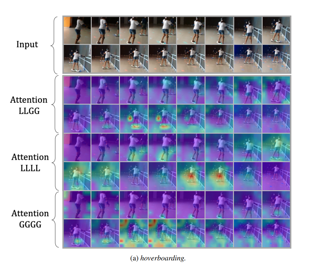 : Grad-CAM이라는 기법으로 모델이 가장 주목한 부분을 히트맵으로 표현한 영상을 보면 LLGG 모델이 주요한 축구공, 스케이트보드 같은 정보에 집중하여 판별을 내렸다는 걸 알 수 있다.