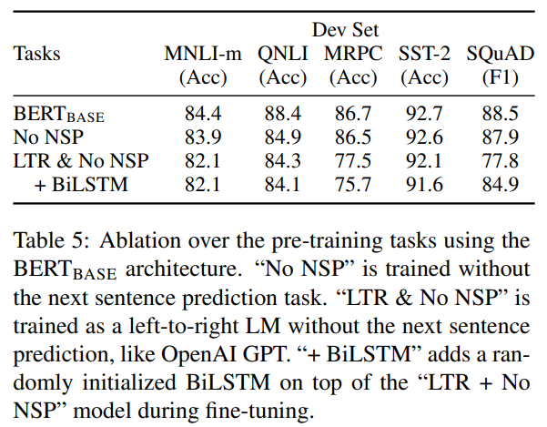 - 좌우 방향성 제한 (LTR;Left-To-Right) 모델은 성능 저하, 특히 QA task에서 큰 차이.