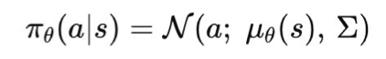 먼저 정책은 다음과 같이 가우시안 분포로 가정한다.