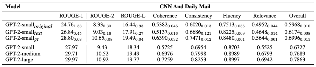 - ROUGE-1: 24.76 → 26.84 (Text) → 28.80 (GT)