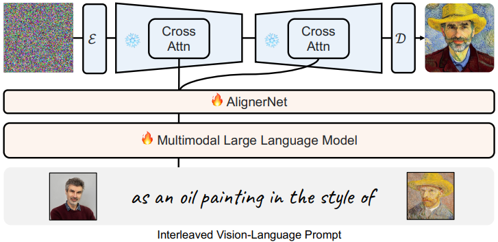 - CLIP 텍스트 인코더를 KOSMOS-G로 교체한 후, 주된 관심은 KOSMOS-G와 이미지 디코더 간의 정렬 문제를 해결하기 위해 AlignerNet을 도입하는 것.