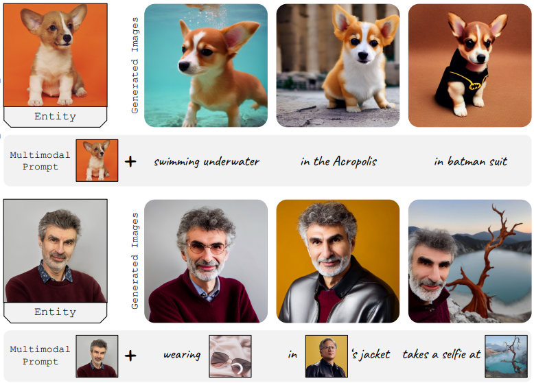 - 시각적 샘플은 재맥락화, 양식화, 수정 및 액세서리 통합( re-contextualization, stylization, modification, and accessory incorporation )에서 생성 기능을 보여줌.