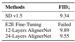 - Table 2는 직접적인 end-to-end 튜닝이 의미 있는 이미지를 생성하지 못하는 것을 보여줌.
