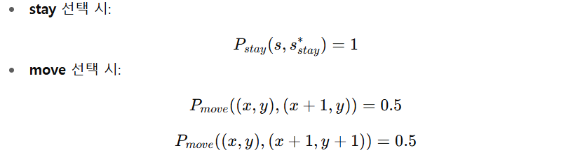 move: 상태 (x,y)에서 확률적으로 이동 가능한 행동: As = {stay, move}
