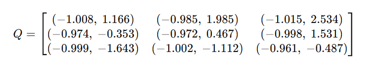 각 항목은 (Q(stay),Q(move))를 의미한다.