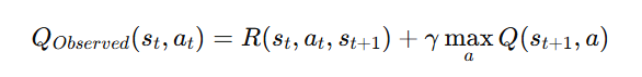 관측값 QObserved(s,a): 실제 보상과 다음 상태의 최대 Q값을 기반으로 계산한 더 정확한 값.